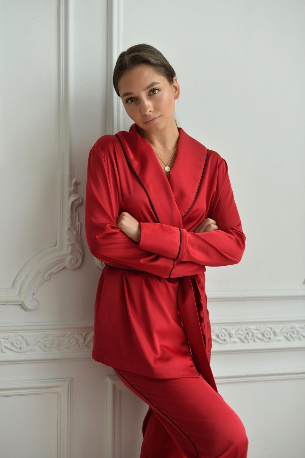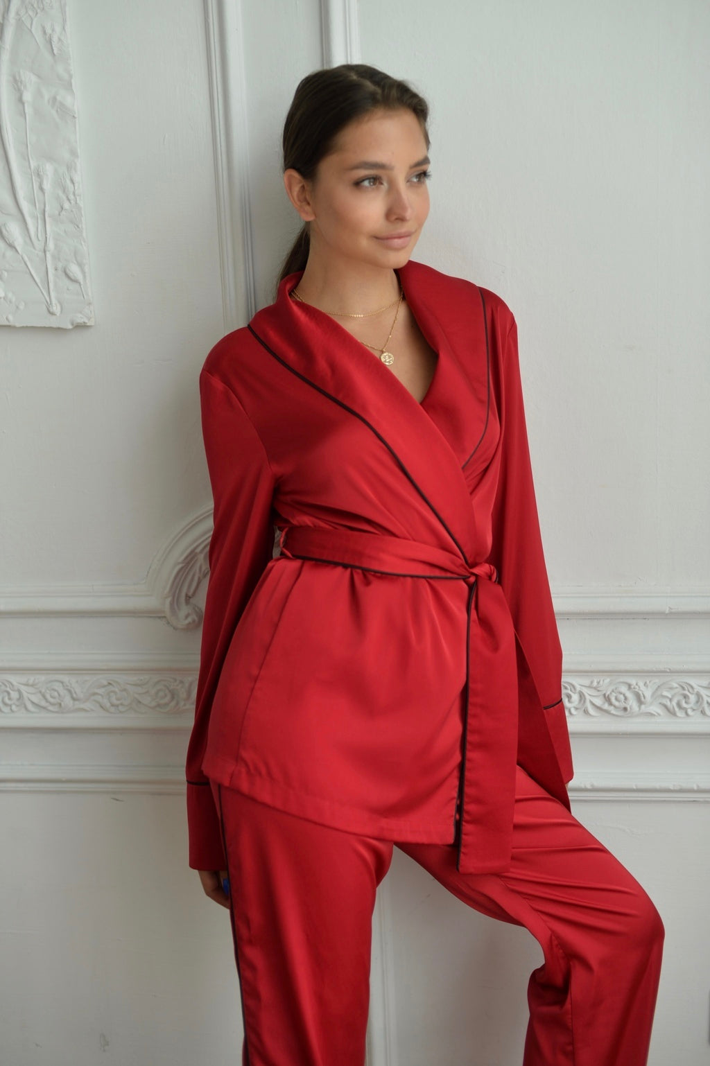Osez la sophistication avec notre pyjama en satin rouge. Une touche de glamour pour des nuits inoubliables, où le confort rencontre l'audace.